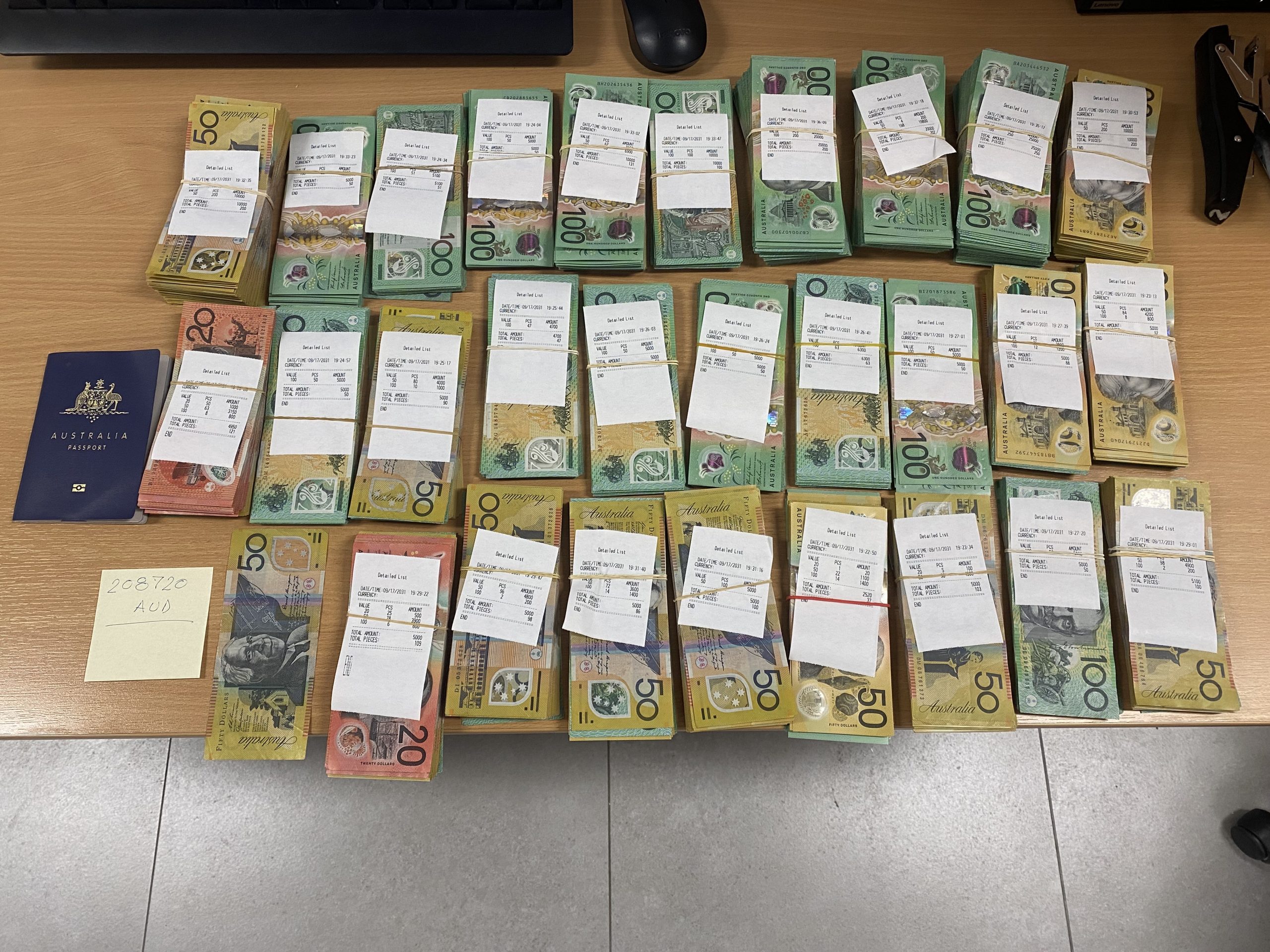 Prilikom redovne kontrole putnika s leta TK 1023, M. B., državljanina Australije, koji se kretao zelenom trakom namijenjenom putnicima koji nemaju ništa prijaviti za carinjenje, pronađen je neprijavljeni novac u iznosu od 208.720,00 AUD, za koji putnik nije imao dokaz o podrijetlu.